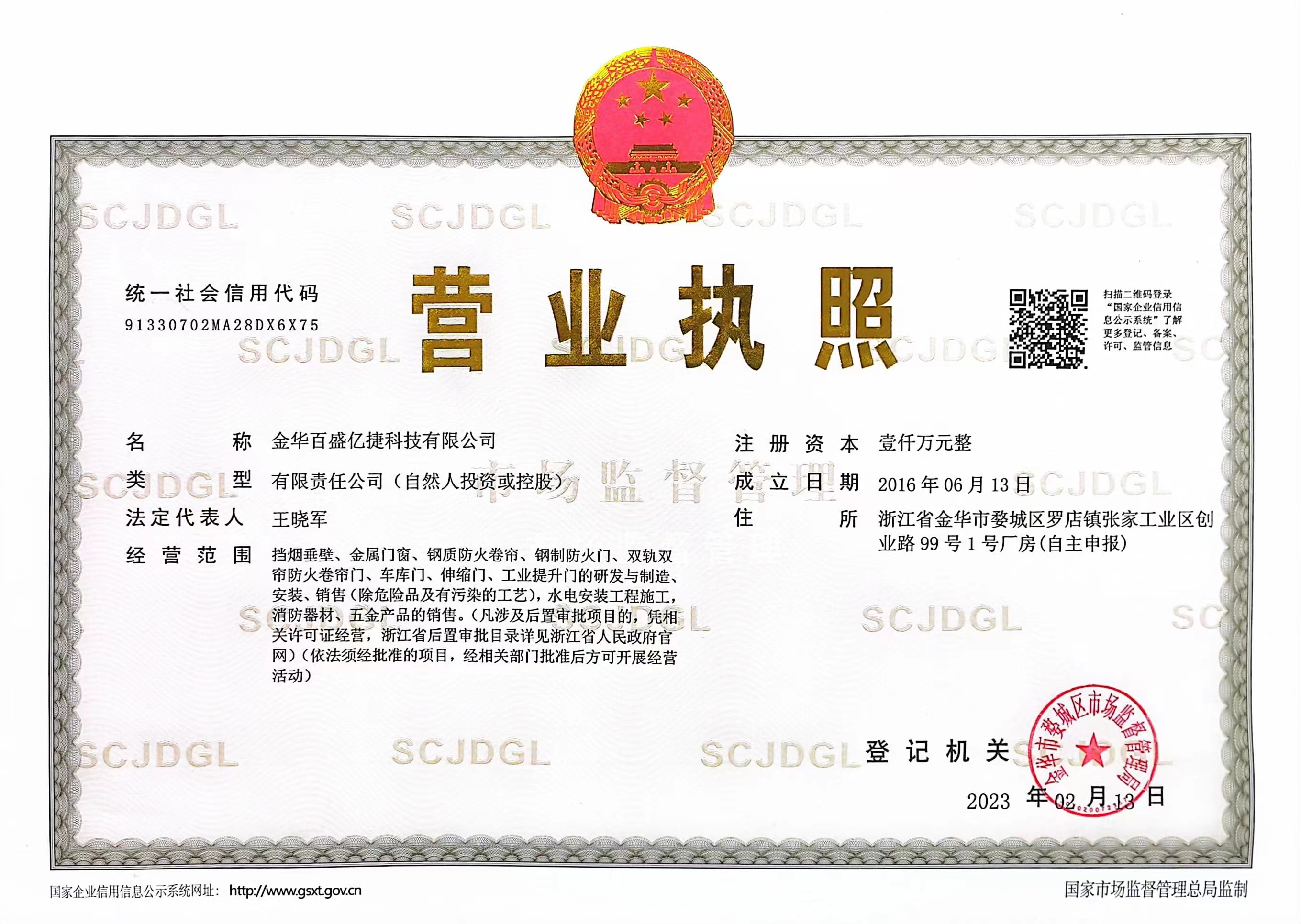 金華百盛億捷科技有限公司是一家銷售、安裝、維修服務(wù)為一體的現(xiàn)代化企業(yè),經(jīng)營產(chǎn)品有:自動(dòng)感應(yīng)門、鋼制防火卷簾、鋼制防火門、雙軌雙簾防火卷簾門、電動(dòng)卷簾門、玻璃感應(yīng)門、電動(dòng)水晶門,自動(dòng)伸縮門、道閘、不銹鋼卷簾門、翻板車庫門、不銹鋼卷閘門等十幾個(gè)品種等系列產(chǎn)品;本公司以"質(zhì)量開拓市場,以誠信贏得市場,以優(yōu)質(zhì)服務(wù)鞏固市場"為宗旨。注重產(chǎn)品質(zhì)量和細(xì)節(jié),不斷完善產(chǎn)品的售后服務(wù)。本公司擁有一批專業(yè)技術(shù)人員,培養(yǎng)了一批熟練的技工,員工具有豐富的安裝經(jīng)驗(yàn),產(chǎn)品造型美觀大方、新穎獨(dú)特,價(jià)位合理,安全實(shí)用 ,歡迎廣大新老客戶來電動(dòng)詳詢。